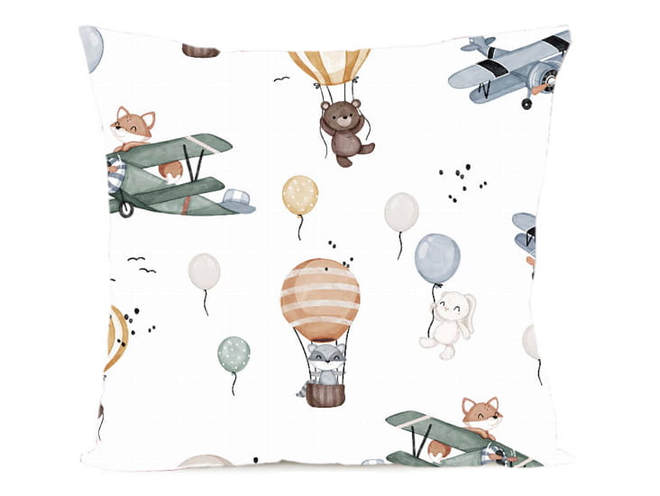 Poszewka na poduszkę 40x40 cm jaśka bawełna biała lis w samolocie